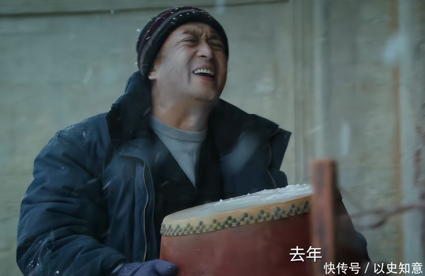 预告片中,暮年胡三元踏雪独行,肩扛巨鼓,随口哼出一段苍劲秦腔,嘶哑声线裹挟风雪扑面而来,寥寥数镜,便将一生悲欢、信仰坚守与时代碾压下的个体尊严,刻画得震人心魄,尽显老戏骨无可替代的表演张力。