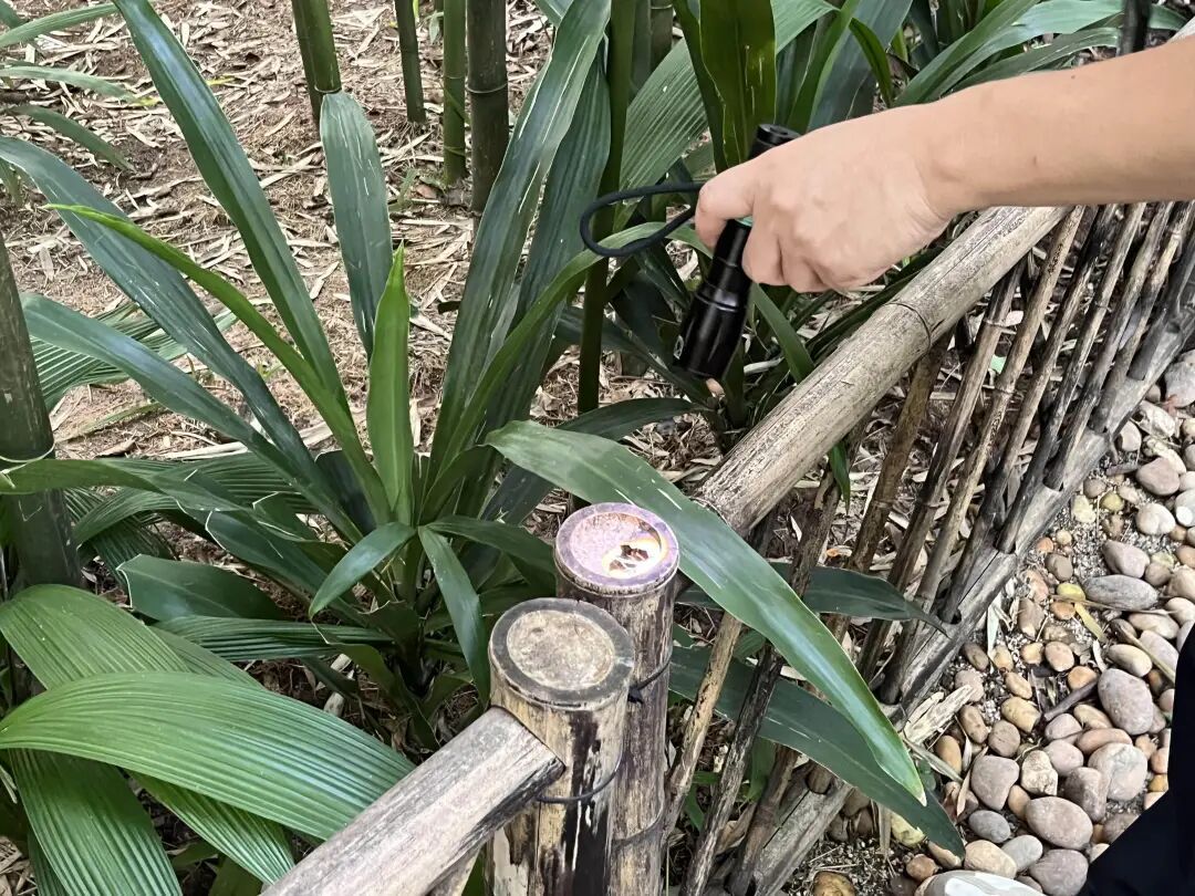 10月14日下午,记者在越秀区兰圃公园看到,园区多处配备驱蚊水、免洗洗手液供游客使用。此外,园区运用生物防治手段,在水池中投放食蚊鱼控制蚊虫幼虫,形成“以鱼控蚊”的生态防蚊长效机制。并通过手电筒照射,重点检查竹子凹槽等易积水、易孳蚊的隐蔽角落,做好翻盆倒罐工作,从源头控制蚊虫滋生。
